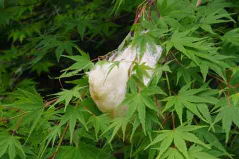 池の上の木の枝に『モリアオガエル』の卵のコロニー!!