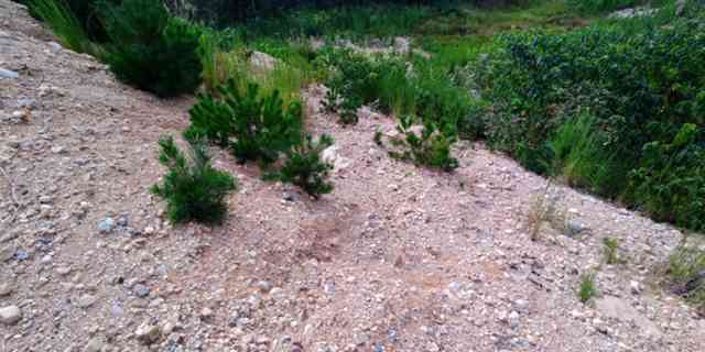 糞だらけの狭い獣道を渡り、最終的には斜面を滑る様に下るのです!!