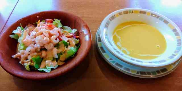 その前にサイゼリアでヒルメシ、前菜に『小エビサラダ&コーンスープ』♪