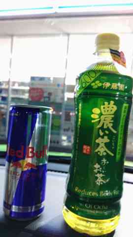 ファミマで旅のお供に『レッドブル&お~いお茶』