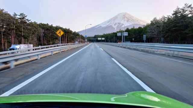 夕陽を浴びる富士山を見ながら、『東富士五湖道路』を