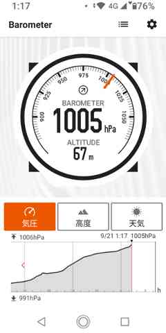 『TORQUE』の気圧計に台風の足跡が