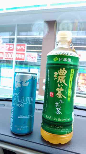 ファミマで旅のお供に『レッドブル&お~いお茶』