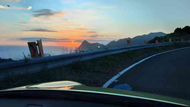 更にR136のワインディングを進むと夕陽は鮮やかなオレンジに♪