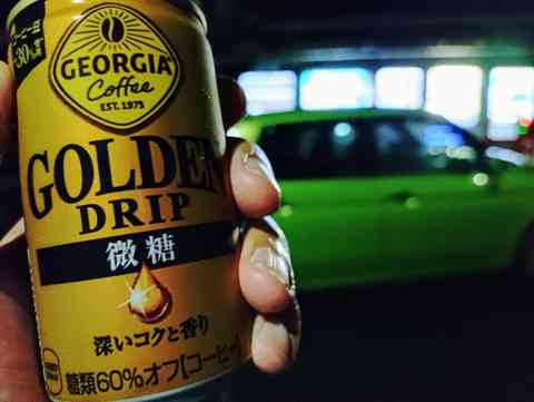 いつもの夜泣き石自販機コーナーで、食後のコーヒーブレイク♪