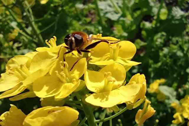 菜の花に【ハナアブ】が来てますね♪