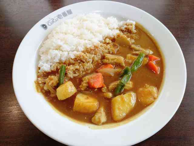 三島町のココイチで『豚もつ野菜カレー』を食べて、台風で水位が