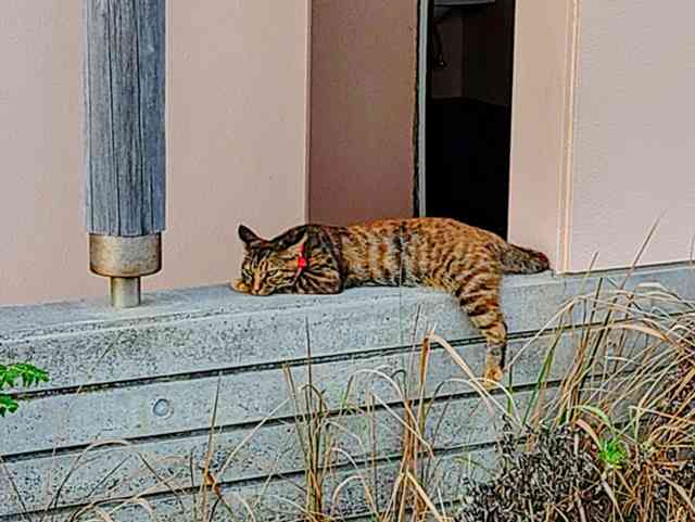 白須賀の高級リゾートホテルのプールサイドで(トイレの壁の上)肌を焼く『リゾート猫』!!(笑)
