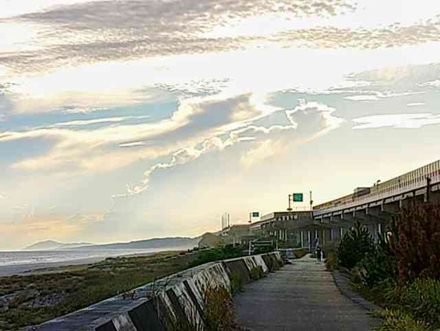 海上には西日が水蒸気にあたり小さな『虹』が!!