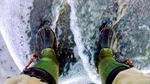 とは、観察用長靴に多数付着した小型蛭を近くの砂浜の波の海水で倒す荒技だ!!