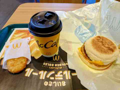 アサメシは近所のマックで『ソーセージエッグマフィン・セット』!!
