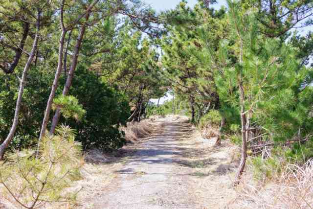 草刈りも行われて歩きやすい遊歩道を行き、松のトンネルを抜けると
