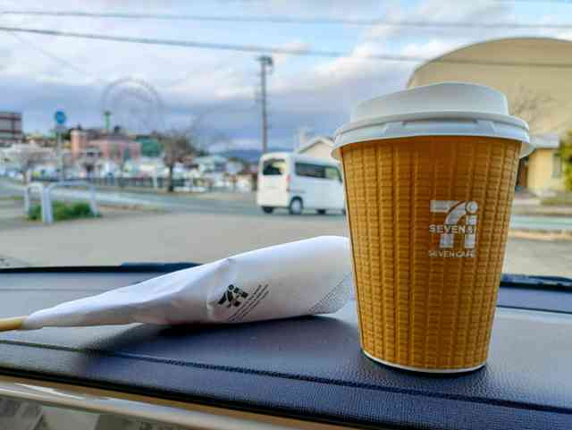ウォーキング後のおやつに『ソーセージ&カフェラテ』調達♪