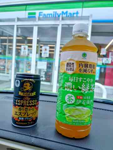 下賀茂の山の中のファミマで『ファミボス&濃い緑茶』
