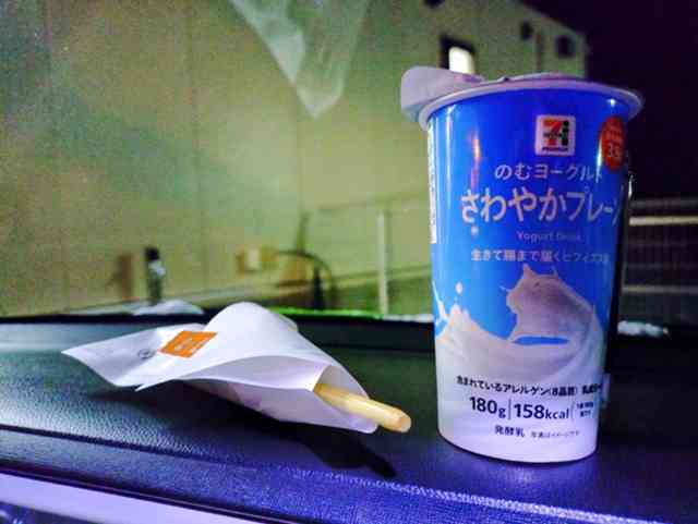 いつものY字路のセブンで『粗挽きソーセージ&のむヨーグルト』で