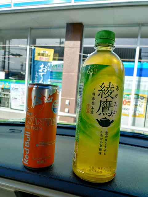 ファミマで旅のお供に『綾鷹&RedBull』調達♪