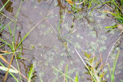 湿原のあちこちに自生する『コタヌキモ』、捕虫嚢は地下茎に