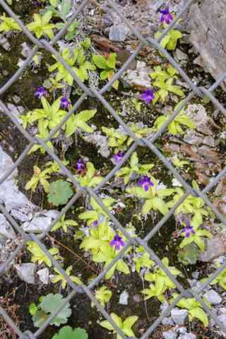 石灰岩質の崖の崖崩れ防止ネットの下や、