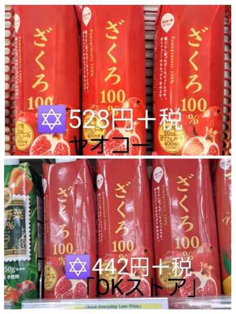 次に、スジャータの「濃縮還元ザクロジュース」(1000ml、紙パック)が、「ヤオコー」というスーパーで、「825円+税」でした。