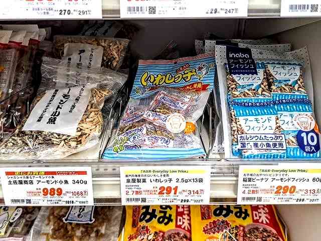 「小魚+ナッツ」の価格を、そのスーパーで調べました。