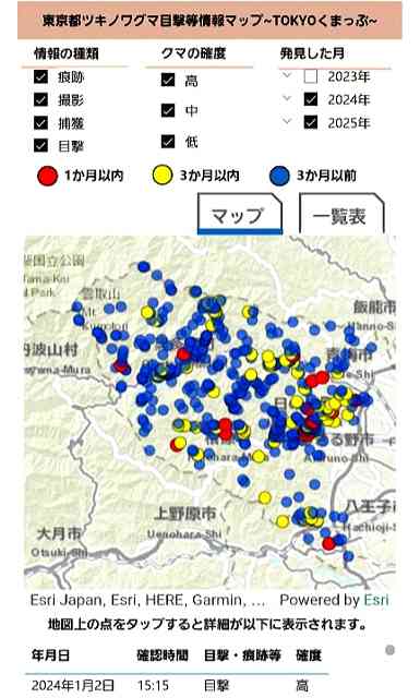 >◆写真は、「東京都のツキノワグマ目撃マップ」です。