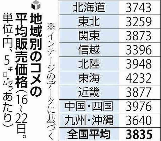約6000店のお米の小売店の価格を調べたインテージのデータでは。