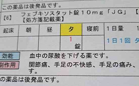 それで、副作用が弱いと思われる、別の「尿酸値を下げる薬」を処方されました。