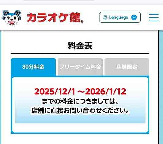 ◆友達と、カラオケに行く話をしていて、よく行くカラオケ店の料金を見たら、「年末年始料金」で、お店に問い合わせしてくださいと表示されました!