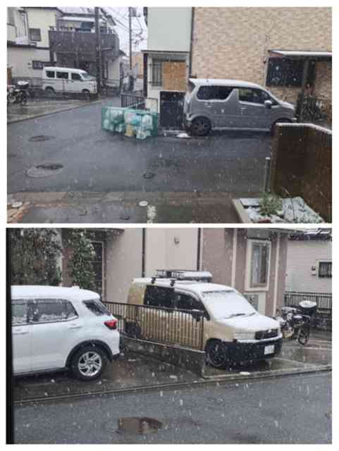 でも、水分が多いので、降るあとから消えて行き、積もらないようです。