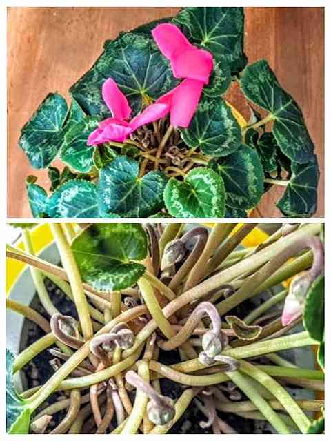 室内の鉢植えの「シクラメン」が咲き始めました。