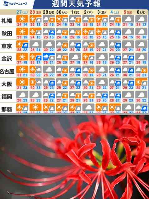 今日は28℃で秋らしくなりますね。