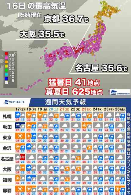 大阪市、名古屋市は過去2番目に遅い猛暑日です。