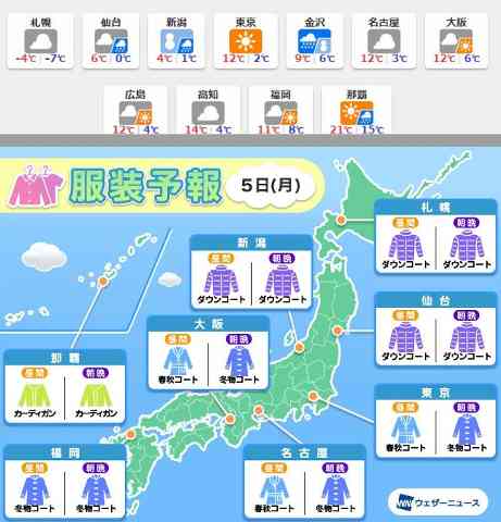 一日を通して厳しい寒さではないものの、雲の多い天気が予想されています。