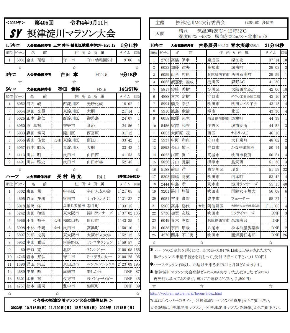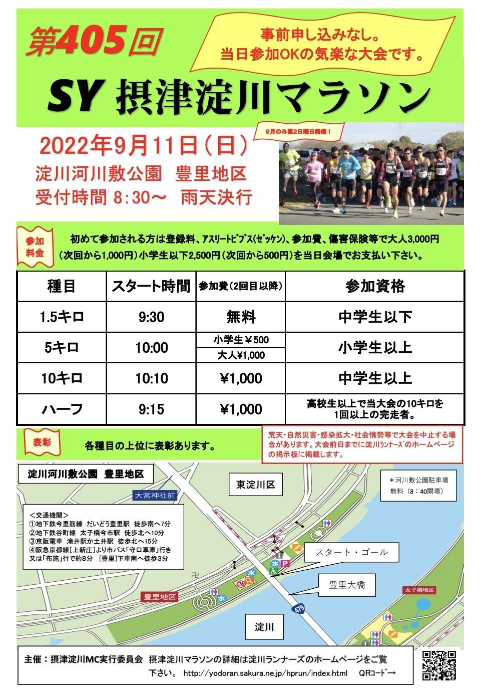 9月11日(日)に第405回摂津淀川マラソン大会が開催されました。